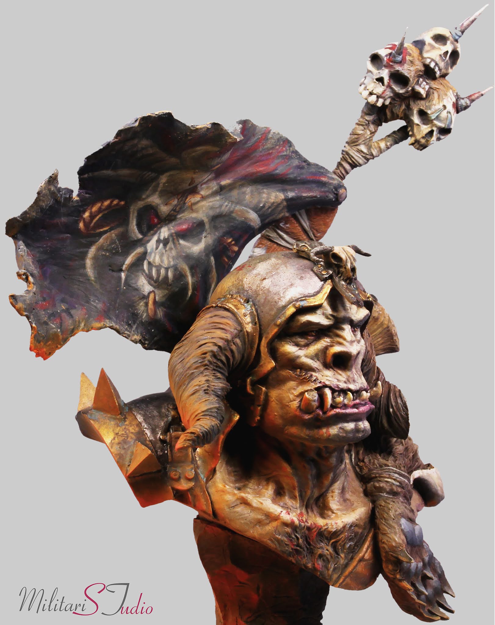 A character inspired by Joe Abercrombie's great trilogy "The First Law". Fantastic quality bust of "Galapagos Miniatures" is painted with Vallejo acrylic. The freehands on the flag are inspired by the work of Gerald Brom and Daniel Zrom.